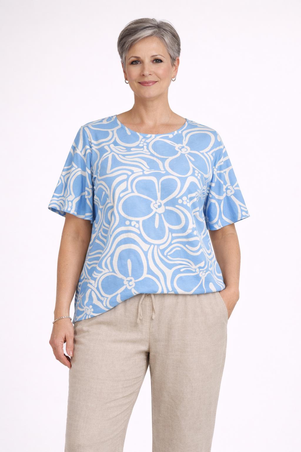 Blauw-witte bloemen top