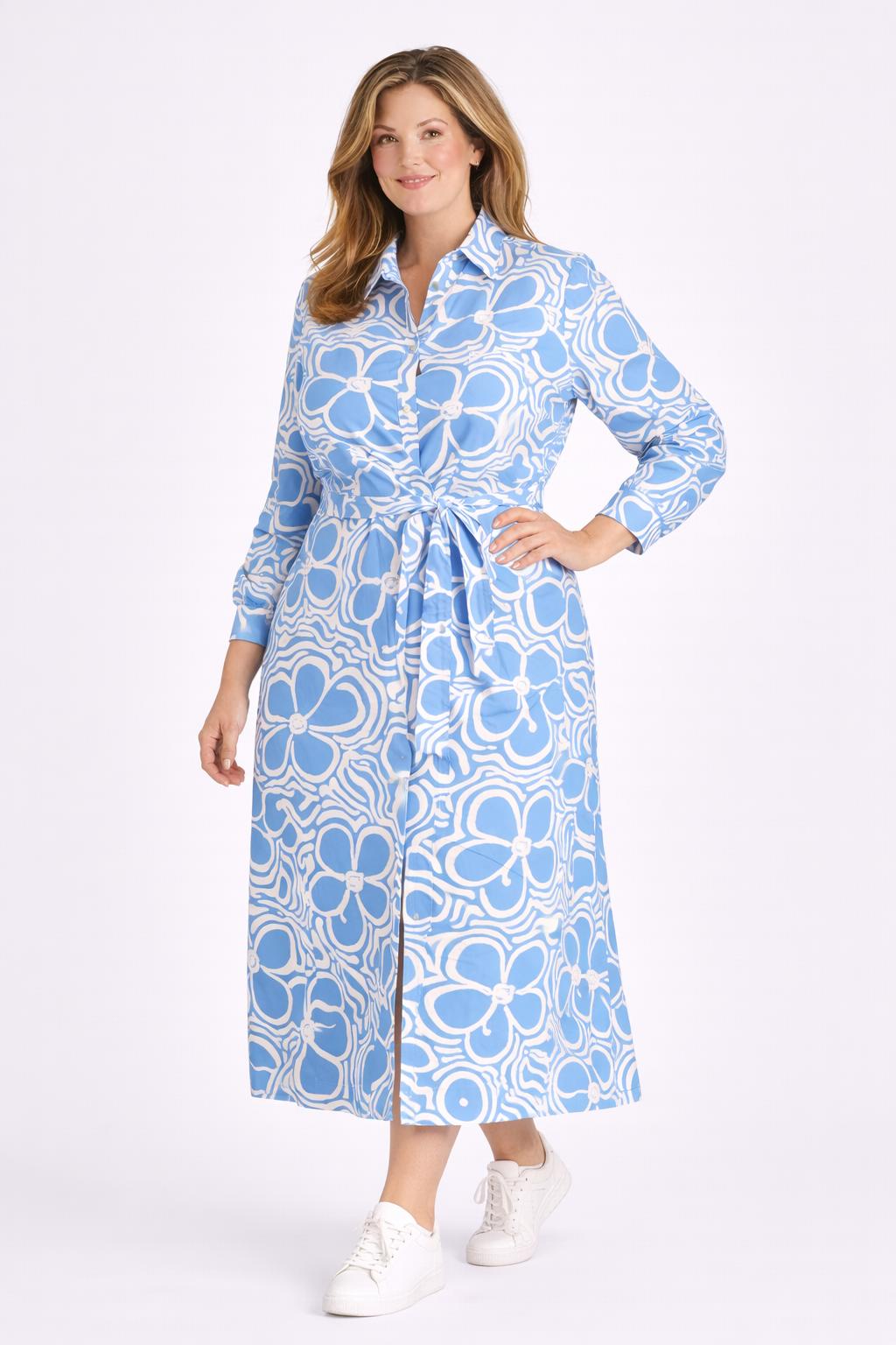 Blauw-witte maxi doorknoopjurk