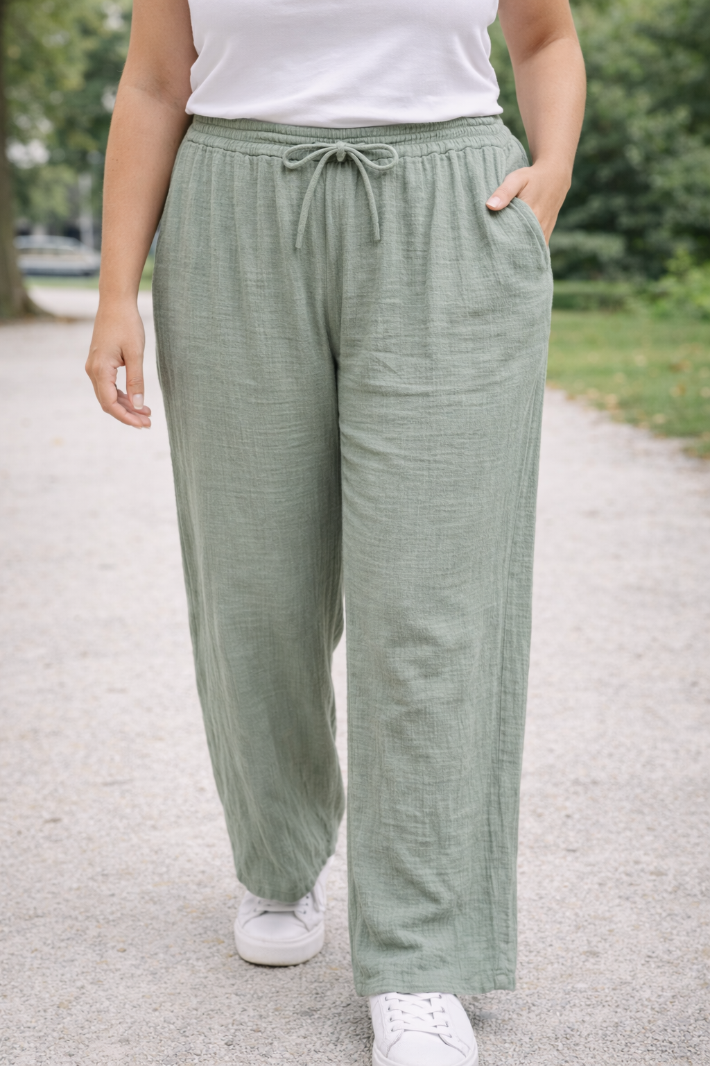 Beige Broek Met Koordsluiting