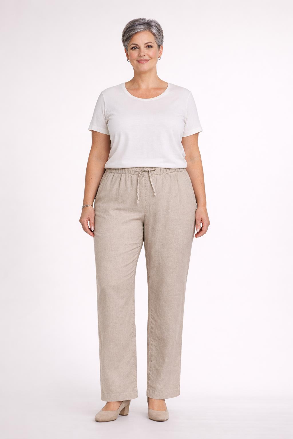 Beige Linnen Viscose Broek