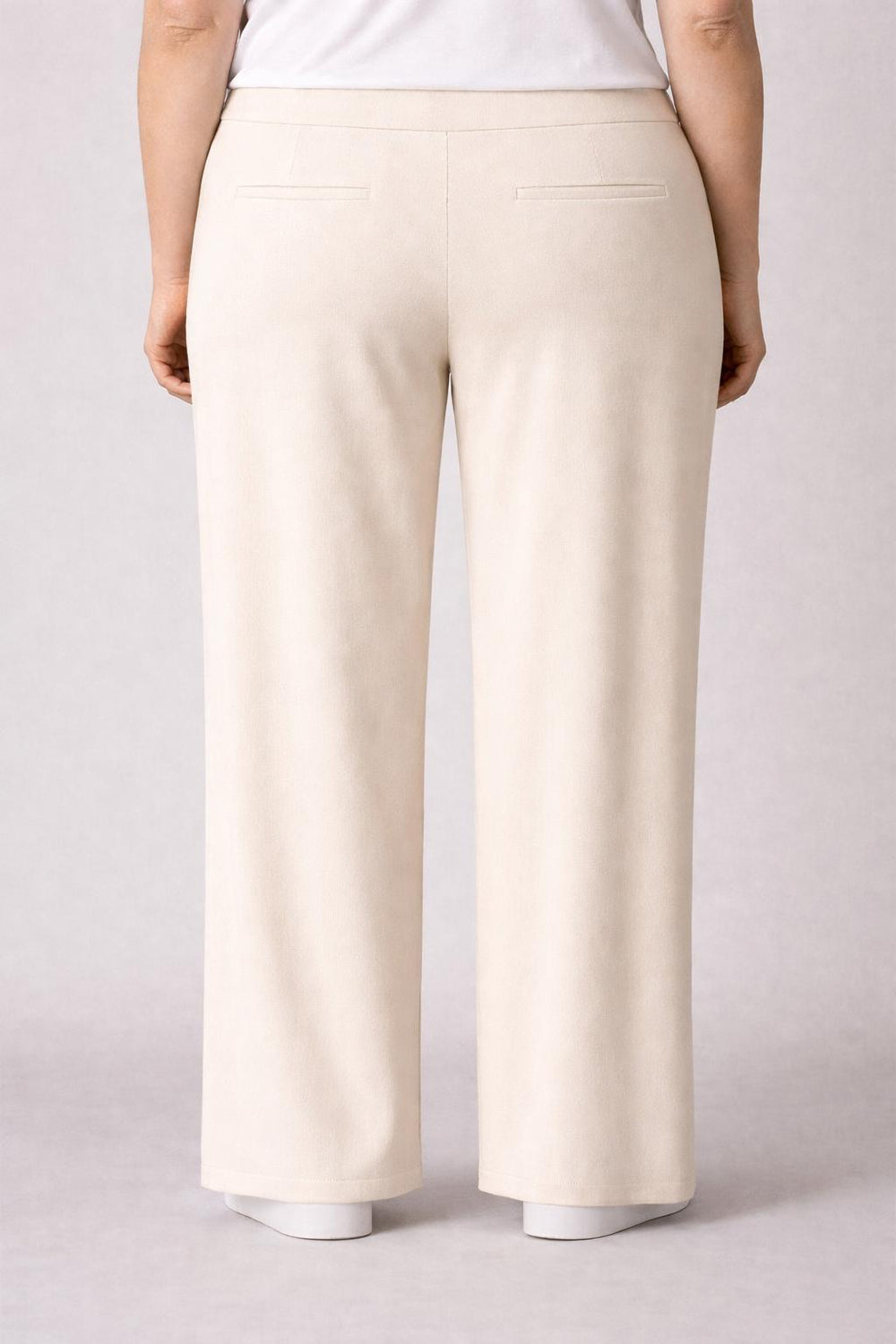 Beige Rechte Broek Met Elastische Tailleband