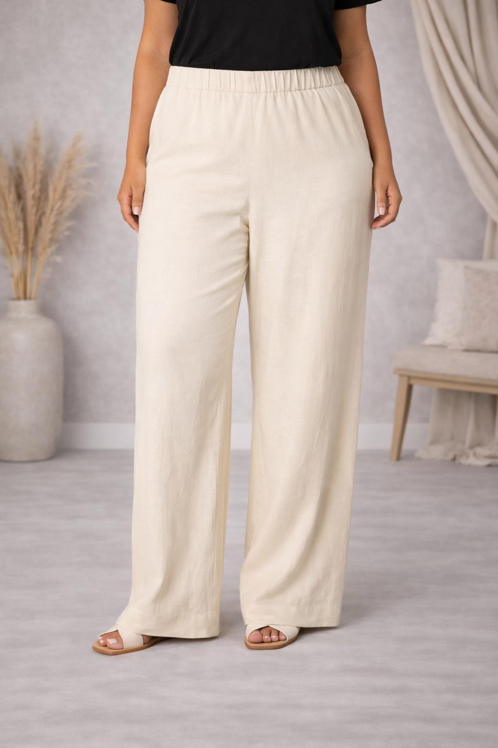Beige Rechte Linnen Broek