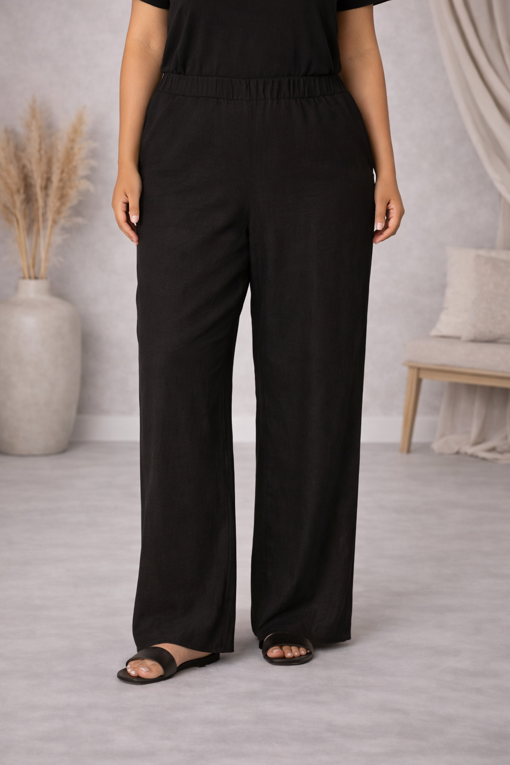 De yula broek van base level curvy combineert plussize mode met ultiem draagcomfort en een tijdloze uitstraling. Gemaakt van een luxe mix van 55% linnen en 45% viscose, biedt deze broek een ademende, zachte textuur die aangenaam aanvoelt op de huid. Dankzij de ruime pasvorm en hoge taille zorgt de broek voor een flatterend silhouet, terwijl de elastische tailleband zich perfect aanpast aan jouw vorm. Dit maakt de yula broek ideaal voor dagelijks gebruik, of je nu kiest voor een ontspannen casual look of een chique, elegante outfit.