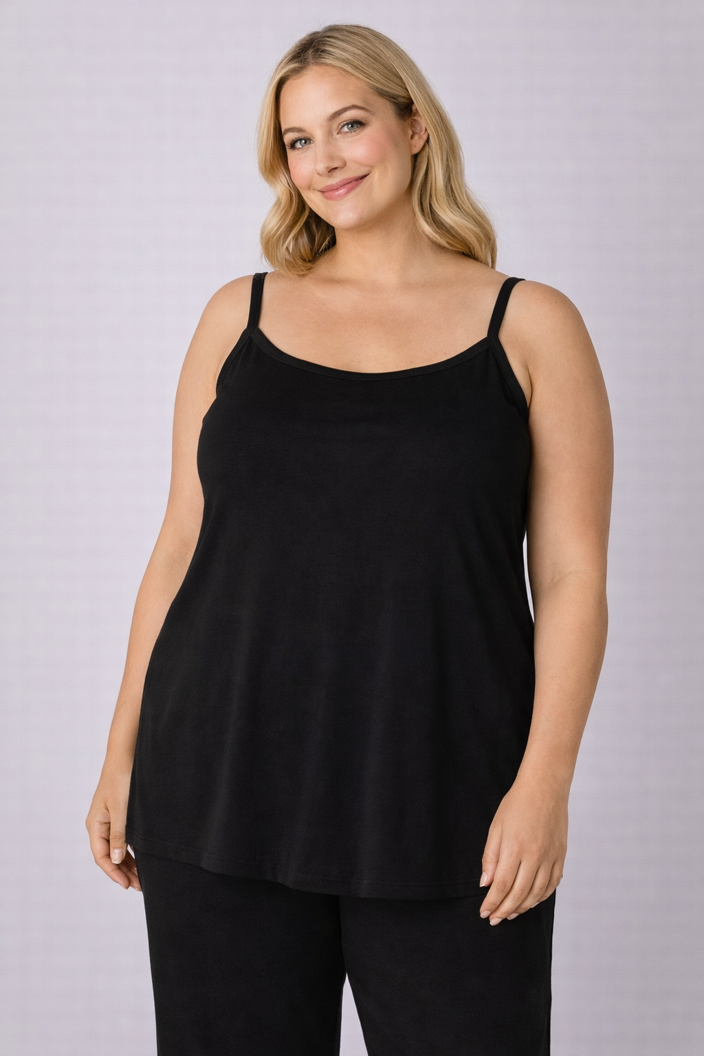 Ontdek de perfecte combinatie van stijl en comfort met dit veelzijdige en kwalitatieve plussize topje. De zwarte Alexa van Base Level Curvy is een absolute favoriet onder onze klanten dankzij de zachte tricot viscosemix, die heerlijk aanvoelt op de huid en moeiteloos met elke outfit te combineren is. De verstelbare spaghetti bandjes zorgen voor een perfecte pasvorm, waardoor je dit topje kunt aanpassen naar jouw comfort. Dit model is ideaal als luchtige zomertop of als basislaag onder een blazer of tuniek maat 44+, waardoor het een onmisbaar item is in elke garderobe.
