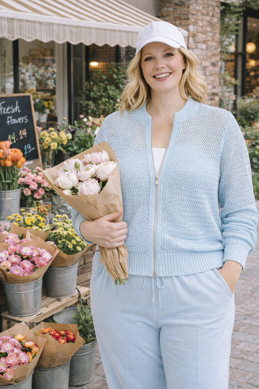 Geef je outfit een frisse update met dit lichtblauwe opengewerkte bombervest – een must-have voor liefhebbers van grote maten dameskleding die houden van comfortabele elegantie met een sportieve twist. Dit item uit de nieuwste Yesta kleding online collectie combineert moeiteloos functionaliteit en stijl, en is ideaal voor frisse lentedagen of zwoele zomeravonden.