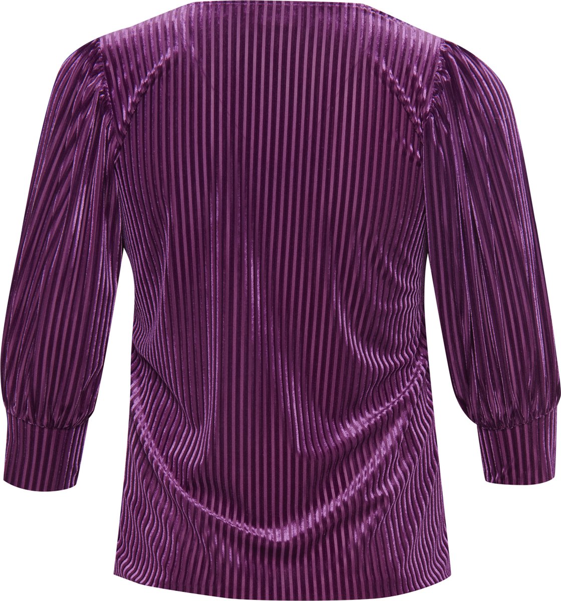 Verwen jezelf met deze paarse blouse met velvet strepen en v-hals, een stijlvolle en veelzijdige keuze voor vrouwen die houden van plussize mode met een luxueuze uitstraling. Dankzij de vloeiende pasvorm en subtiele textuur is deze blouse perfect voor zowel casual als geklede outfits, waardoor hij een must-have is in elke garderobe.
