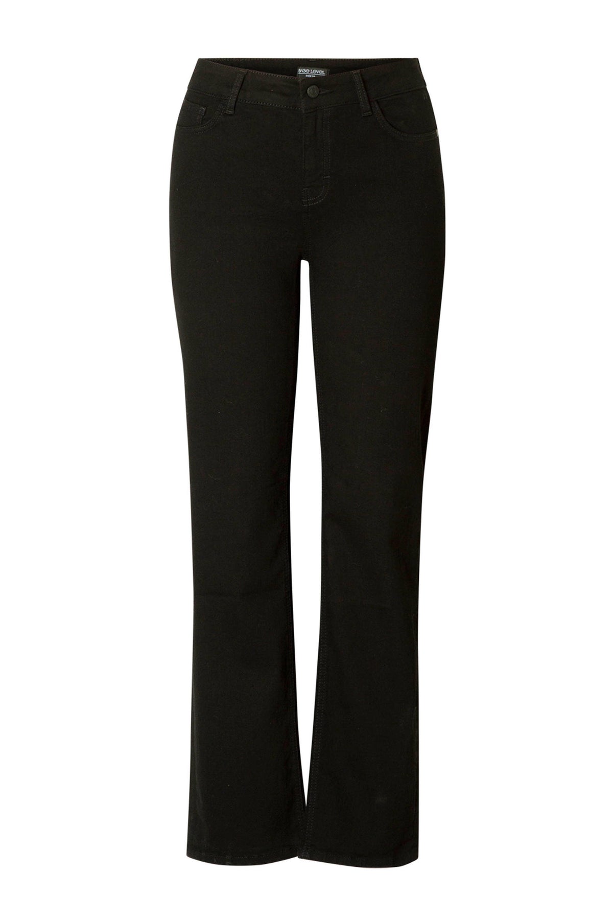 Zwarte jeans met rechte pijpen, deze jeans valt klein op de maat. Wij adviseren 1 of zelfs 2 maten groter te bestellen in vergelijking met andere base level curvy broeken.