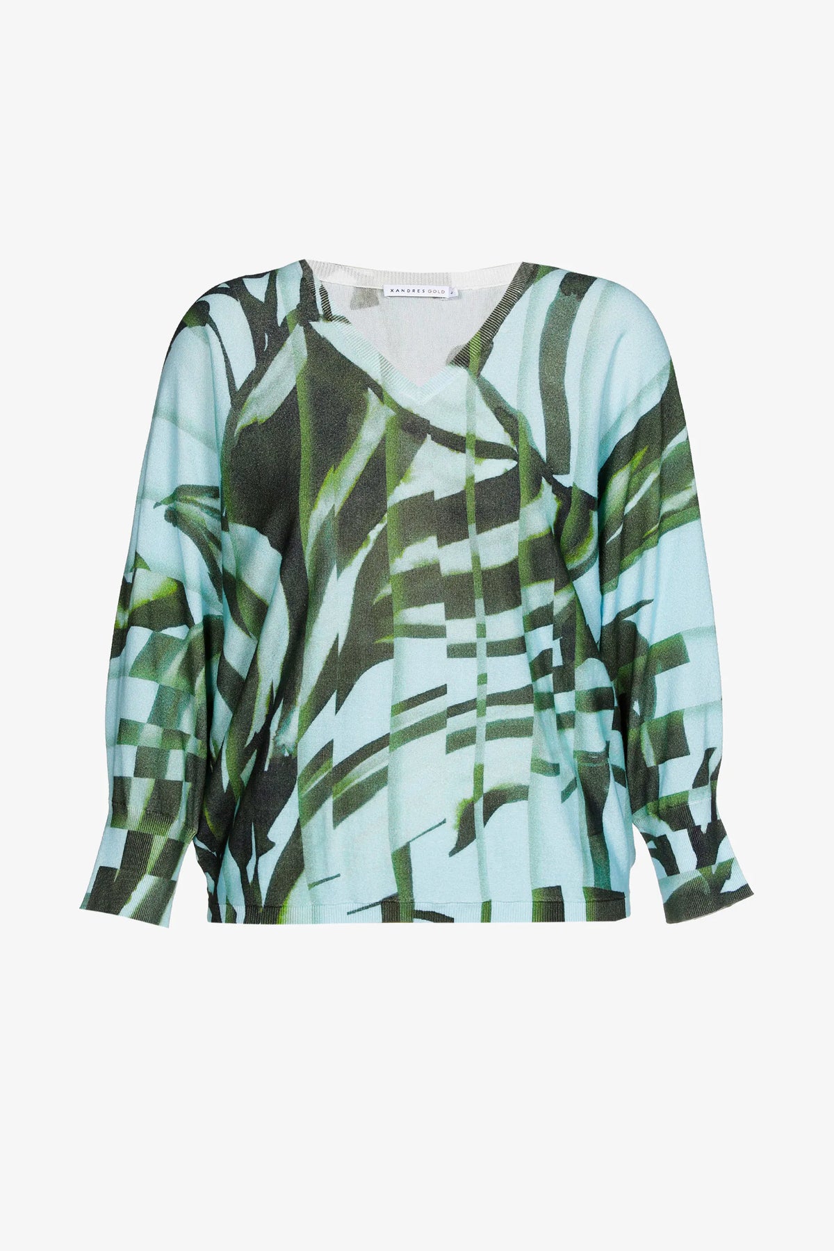 Deze opvallende trui van Xandres combineert een moderne print met een comfortabele pasvorm. De frisse lichtblauwe basis wordt versterkt door een artistieke groene print die meteen karakter geeft aan je outfit. Het grafische patroon zorgt voor een eigentijdse uitstraling en maakt deze trui een echte blikvanger binnen stijlvolle grote maten dameskleding en moderne plussize fashion.
