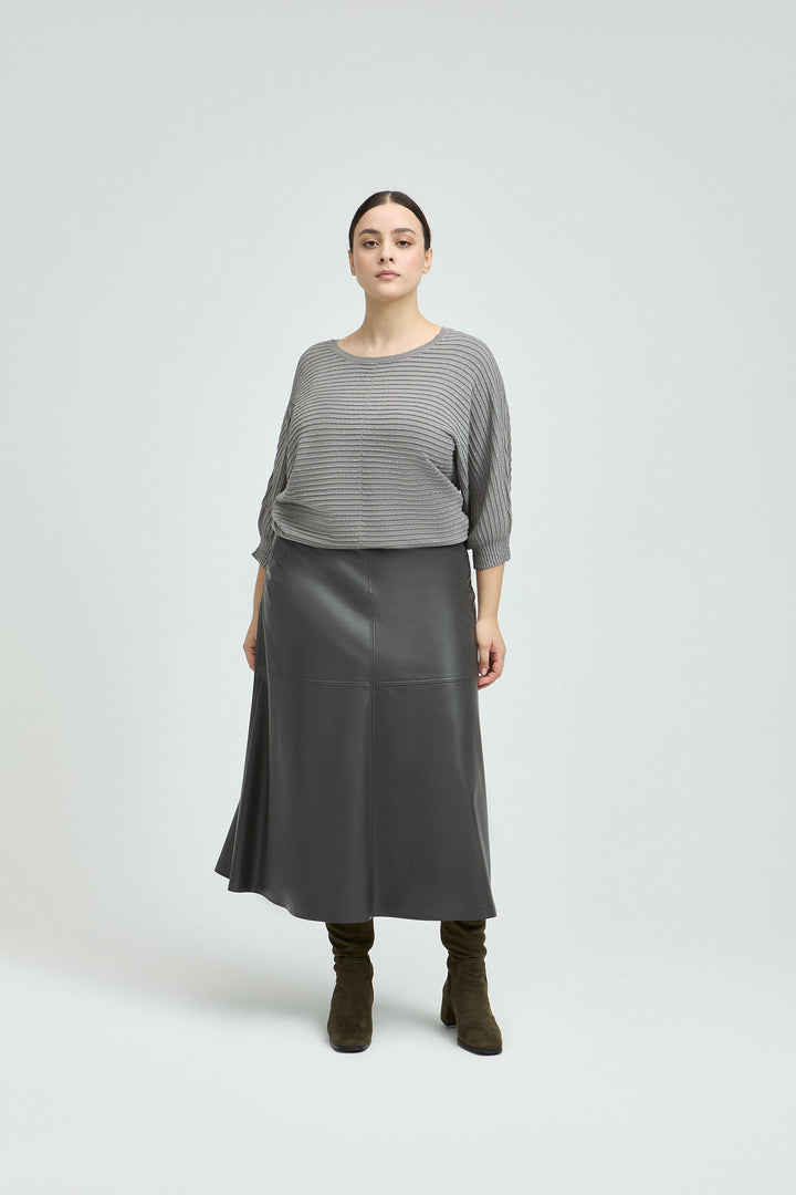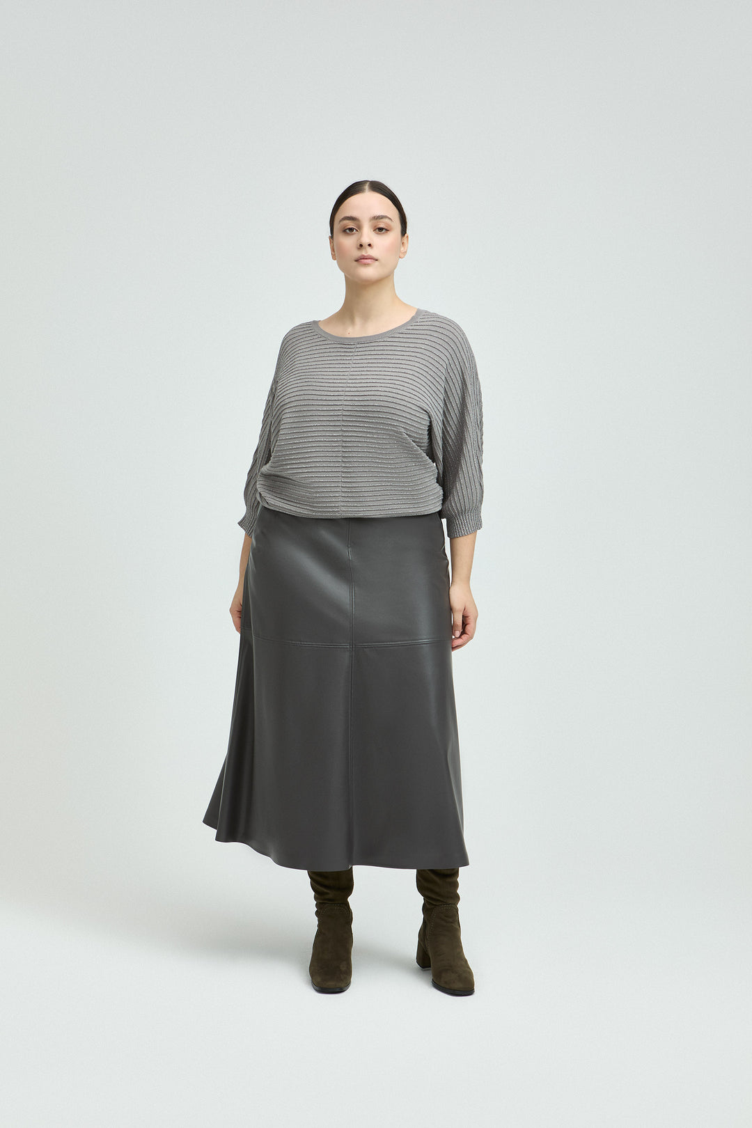 Deze verfijnde trui met grafietkleurige lurexstrepen is een stijlvolle herinterpretatie van een geliefd model uit eerdere Xandres-collecties. De horizontale strepen creëren een visueel slank silhouet en zorgen voor een flatterende pasvorm die elke vrouw doet stralen. De glanzende lurexdraad is subtiel verweven in de stof, wat de trui een geraffineerde sprankeling geeft zonder opdringerig te zijn. De zachte viscoseblend (68% viscose, 21% polyamide en 11% metaal) voelt comfortabel aan op de huid en behoudt zijn vorm, zelfs na meerdere wasbeurten. Deze Xandres trui is ontworpen met een iets lossere fit en driekwartmouwen, waardoor hij moeiteloos combineert met zowel een casual jeans als een elegante rok. Dankzij de grafietkleur straalt hij een tijdloze klasse uit en vormt hij een perfect alternatief voor neutrale basistinten. Ideaal voor vrouwen die houden van dameskleding grote maten met net dat tikkeltje extra. De lurexdetails tillen deze trui naar een hoger niveau, waardoor je look altijd iets feestelijks uitstraalt – zelfs op gewone dagen. De trui ademt het DNA van Xandres: Belgisch design, luxueuze materialen en een feilloze afwerking. Combineer hem met andere Xandres stuks zoals een leather look rok of een pantalon voor een complete outfit die comfort en stijl naadloos met elkaar verbindt. Het model is bovendien ideaal voor dames die houden van comfortabele plussize kleding waarin ze zich tegelijk vrouwelijk en krachtig voelen. Deze trui is meer dan een kledingstuk: het is een garderobefavoriet in wording, klaar om jouw stijl dagelijks te versterken. De trui is onderdeel van een exclusieve collectie die inspeelt op de noden van moderne vrouwen die stijlvol door het leven willen gaan, ongeacht maat of gelegenheid.