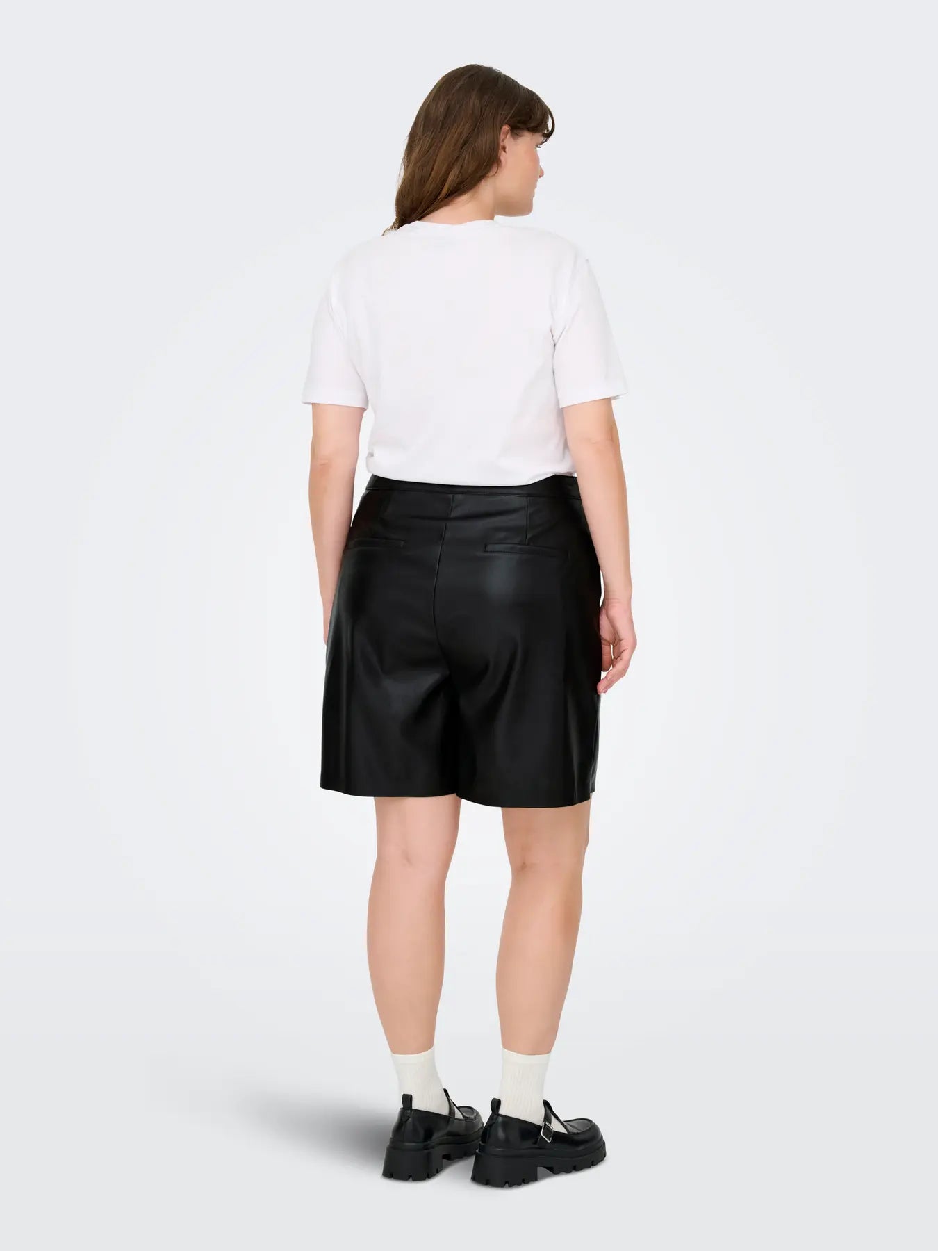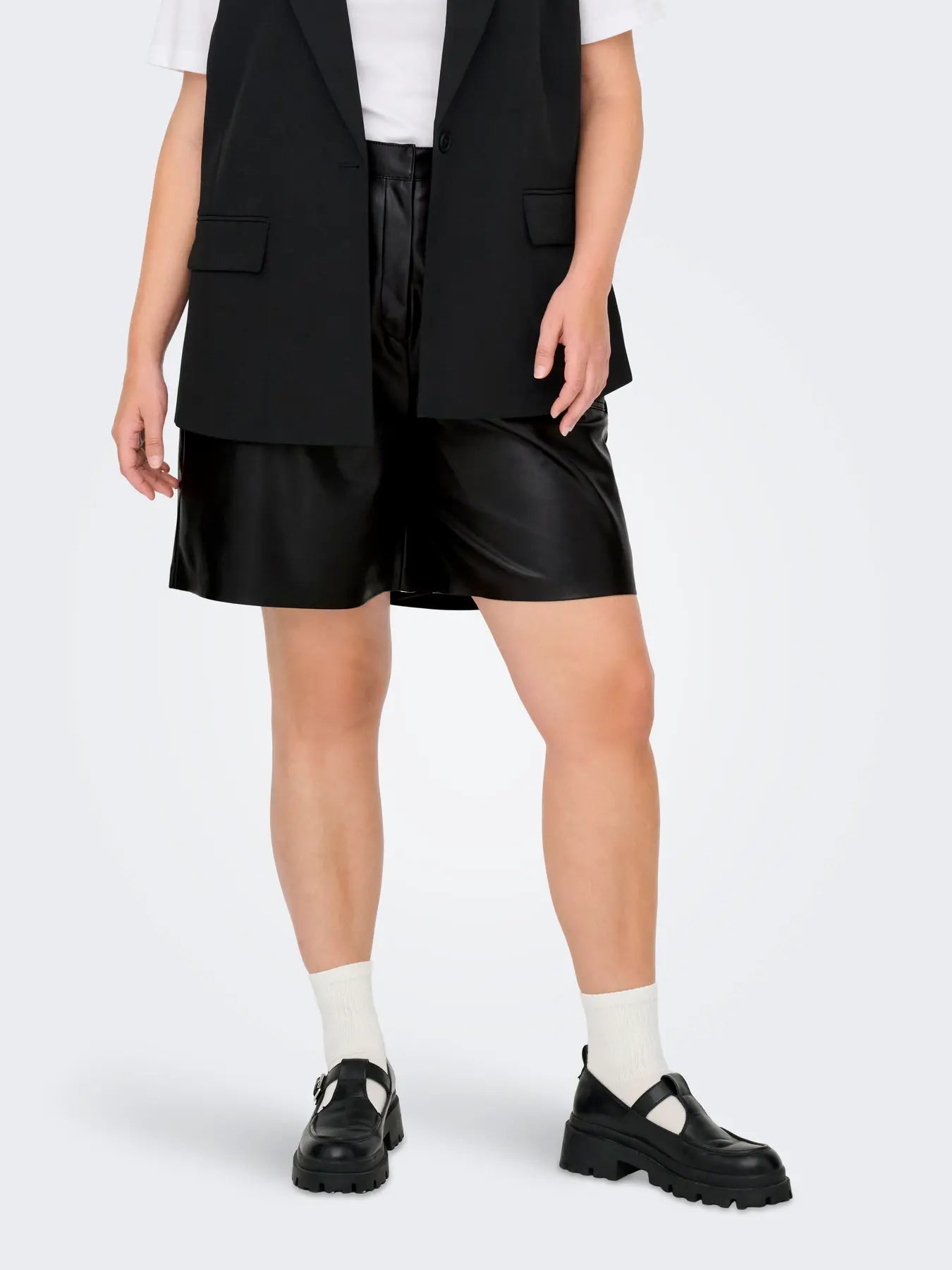 Maak je plus‑size garderobe spannender met deze zwarthouten faux leather shorts van ONLY CARMAKOMA, ontworpen voor vrouwen die houden van edgy stijl én comfort in één statement‑stuk. Deze shorts hebben een baggy fit, waardoor ze losjes vallen maar toch een sterke silhouet creëren. De kunstleerlaag (polyurethane coated) geeft een subtiele glans die luxe en uitstraling toevoegt aan je look. Let op: de achterzakken zijn niet functioneel — puur decoratief — waarmee de voorzijde van de short de focus krijgt.
