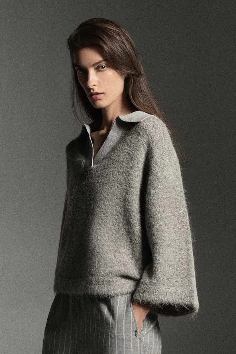 Ervaar ultiem comfort en verfijnde elegantie met deze oversized polo in zachte Milano brei, een onmisbaar item uit de exclusieve capsulecollectie van Xandres. Deze polo in grijs of light tan is een toonbeeld van hoe moderne dameskleding grote maten tegelijk stijlvol én aangenaam kan zijn. De luxueuze mix van 55% alpaca, 24% acryl, 19% polyamide en 2% elastaan maakt deze polo ongelooflijk zacht en warm, perfect voor de koudere seizoenen zonder in te boeten op elegantie.