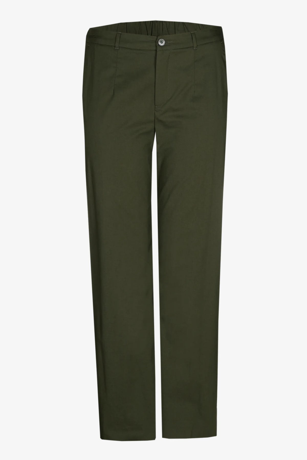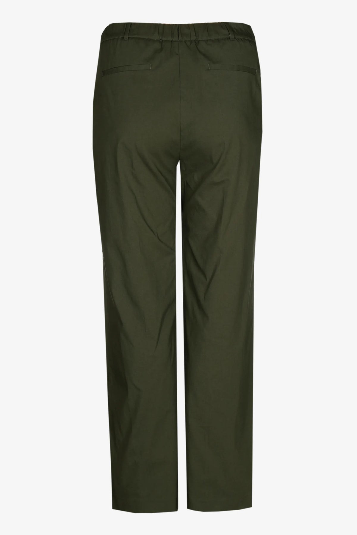 De stof bestaat uit een zorgvuldig geselecteerde mix van 66% organisch katoen, 29% polyamide en 5% elastaan. Deze combinatie garandeert niet alleen een mooie structuur en aangename stretch, maar is ook vriendelijker voor het milieu. De midnight green kleur is rijk en veelzijdig: combineer moeiteloos met crème, ecru, marine, zwart of zelfs warme aardetinten.