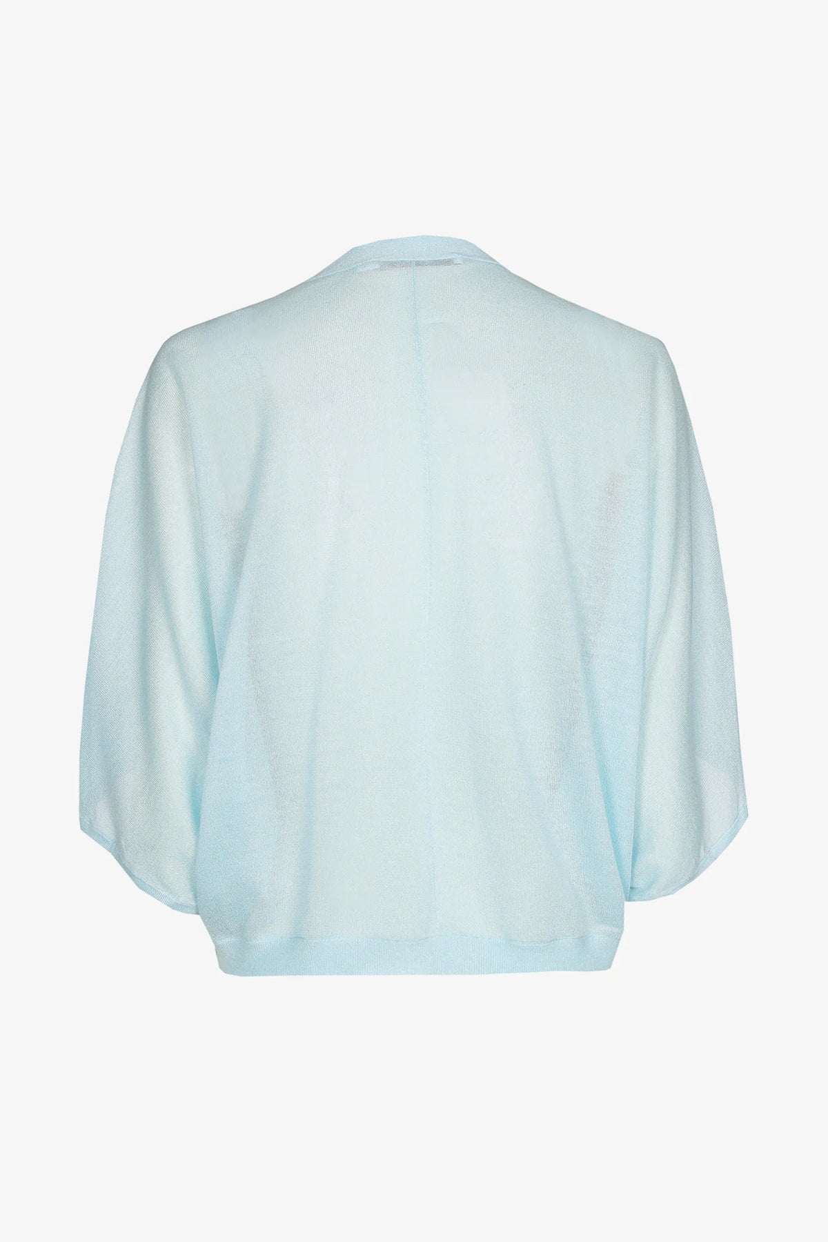 Het zachte lichtblauw geeft elke outfit een frisse, zomerse toets. Draag het vestje losjes over een kleedje, of combineer het met jeans of een linnen broek voor een casual, maar verzorgde look. Dankzij de ademende stof en het lichte gewicht is dit ook een ideaal kledingstuk om mee te nemen op reis of om snel over de schouders te gooien op een frisse ochtend of een zwoele zomeravond.