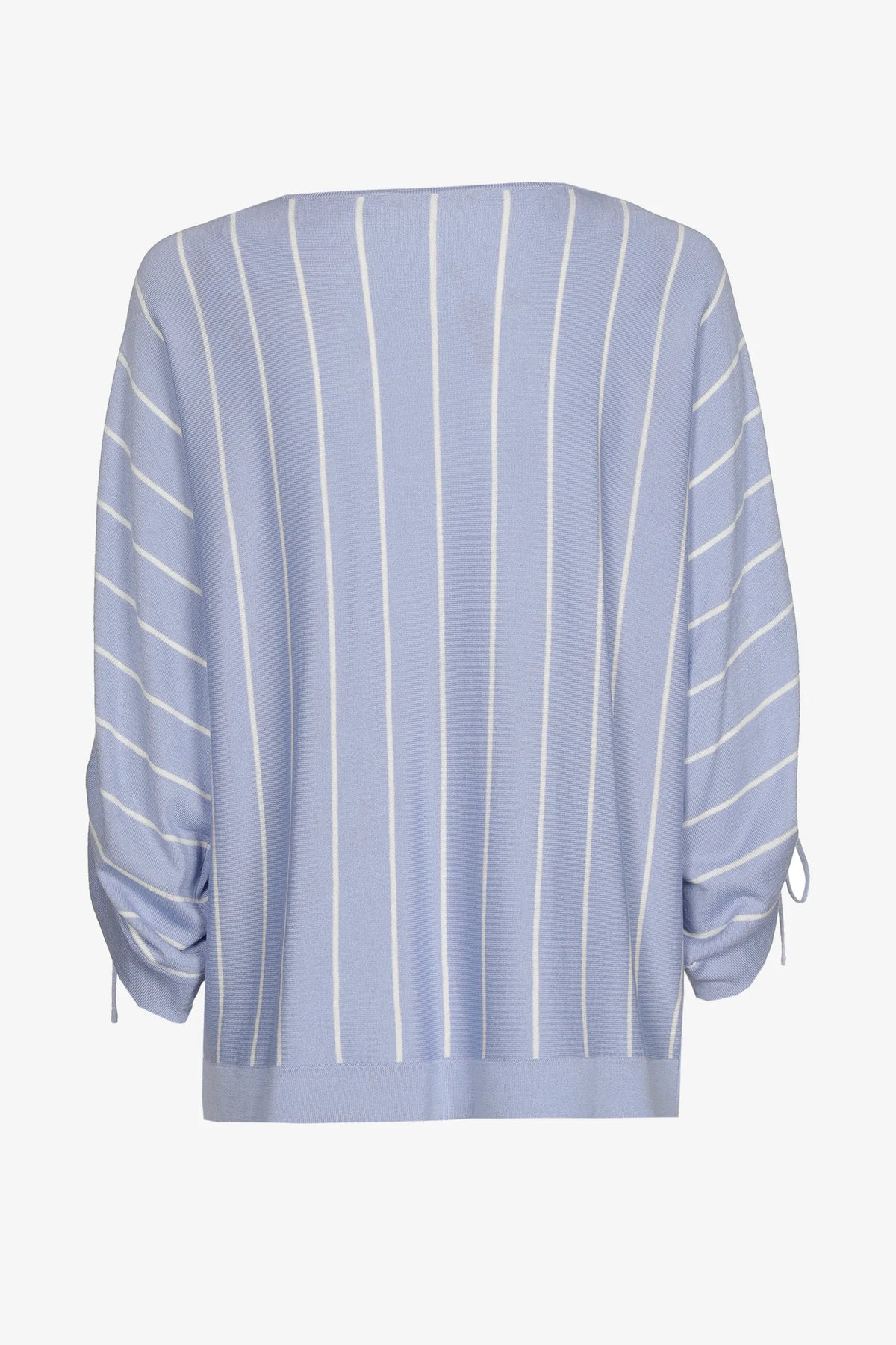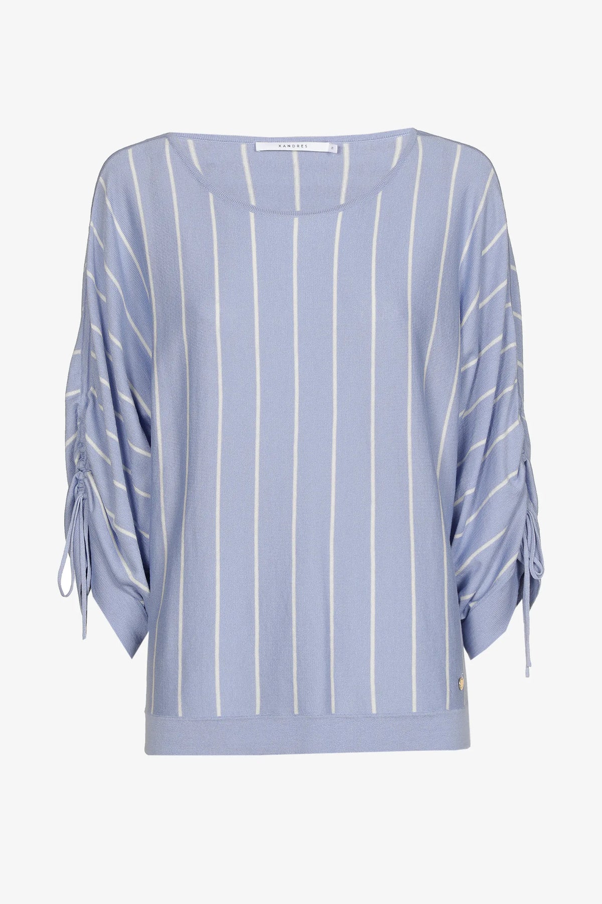 Wat dit truitje écht bijzonder maakt, zijn de verstelbare mouwen. De mouwlengte komt tot net onder de elleboog, maar dankzij het tunnelkoord met fijne lintjes aan de binnenzijde kun je zelf kiezen hoe je ze draagt. Trek het lintje aan en creëer een speelse, gefronste korte mouw voor een nonchalante, sportieve look. Draag je de mouw liever lang en los? Ook dat kan, en zo krijg je in één kledingstuk twee totaal verschillende stijlen. Een detail dat niet alleen praktisch is, maar ook visueel charme toevoegt aan je outfit.
