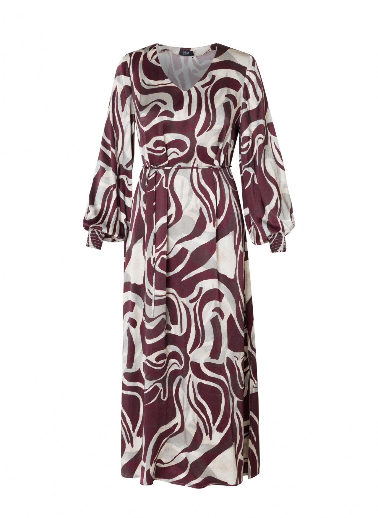 Deze elegante midi-jurk in grote maten van Yest Curve is dé perfecte keuze voor vrouwen die houden van stijl met karakter. De abstracte print in dark bordeaux en zachte beige accenten creëert een opvallende maar toch verfijnde look. Ideaal voor zowel alledaagse momenten als een speciale gelegenheid in Herent, Leuven of elders in Vlaams-Brabant.
