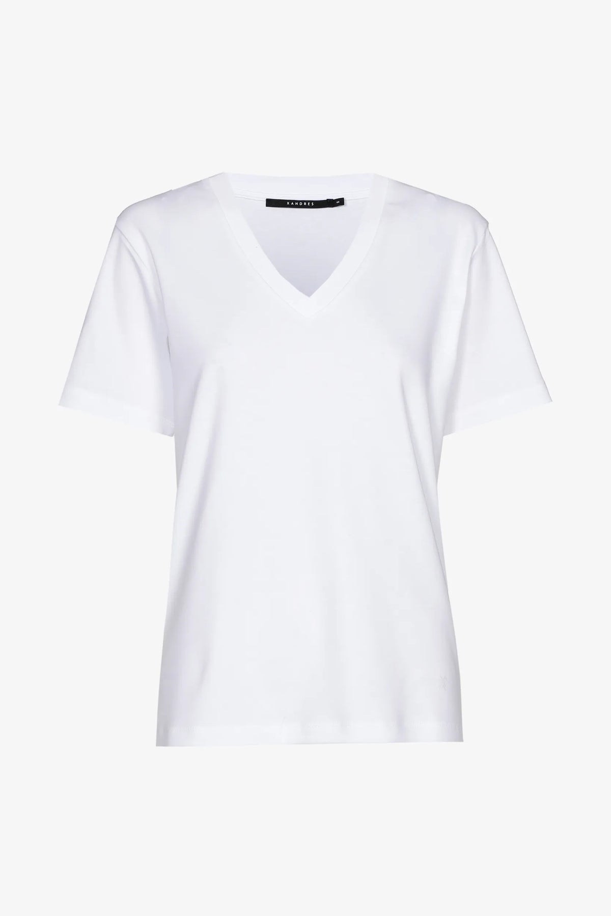 Een goede basic is onmisbaar in elke plussize garderobe – en dit wit T-shirt met V-hals van Xandres bewijst dat stijl en eenvoud perfect samengaan. Dit model heeft een flatterende V-hals, korte mouwen en een rechte, iets lossere snit die mooi over het lichaam valt. Ideaal voor vrouwen met een maatje meer die houden van comfortabele en stijlvolle kleding.