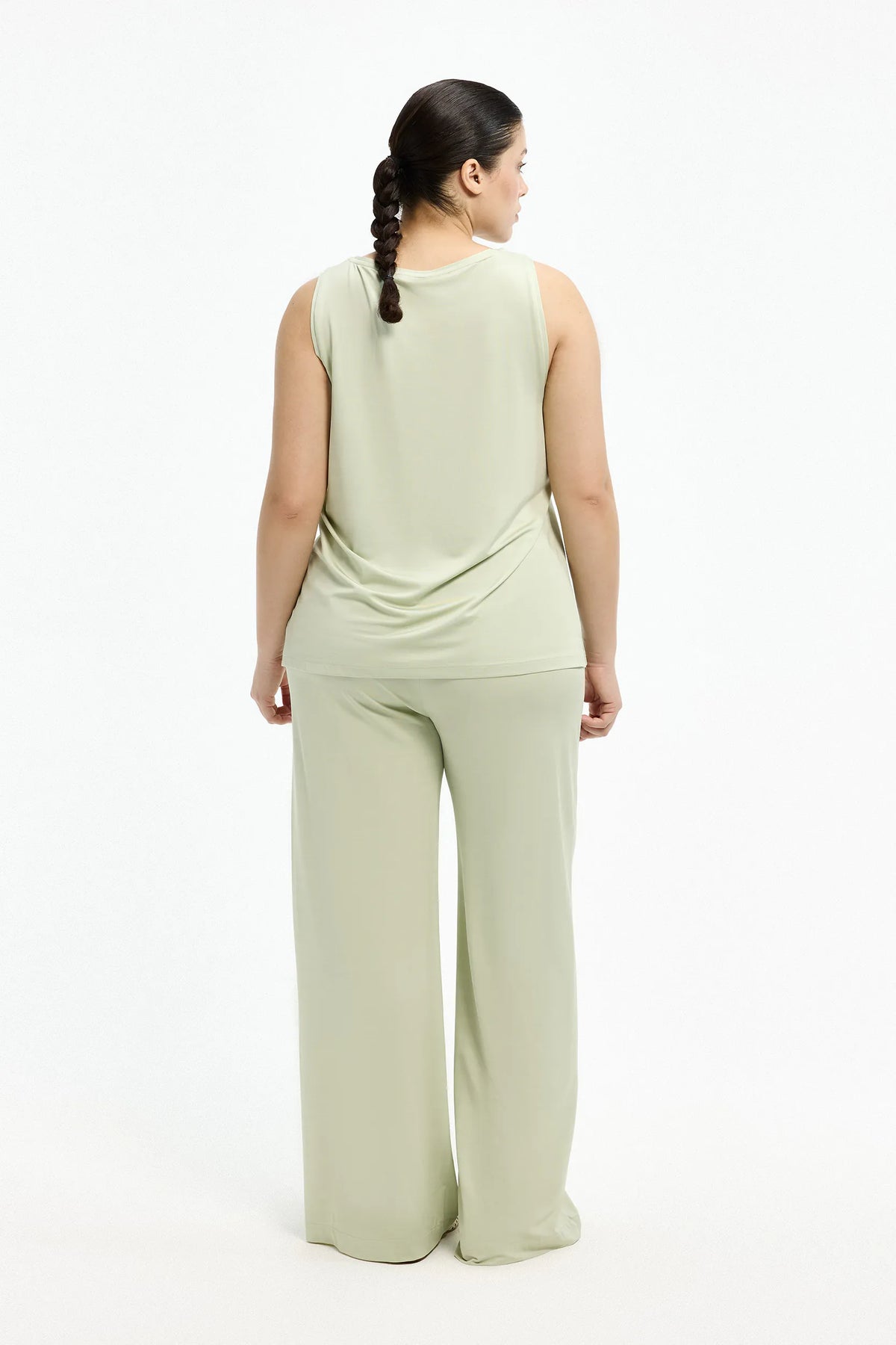 Ontdek ultiem comfort en stijl in deze zachte broek met rechte pijpen van Xandres, ontworpen voor vrouwen die houden van comfortabele plussize kleding met een elegante uitstraling. Deze broek is uitgevoerd in een verfijnde mistgroene tint en gemaakt uit een soepele stretchstof die moeiteloos met je lichaam beweegt. De rechte snit zorgt voor een flatterend silhouet en een tijdloze look, ideaal voor elke gelegenheid.